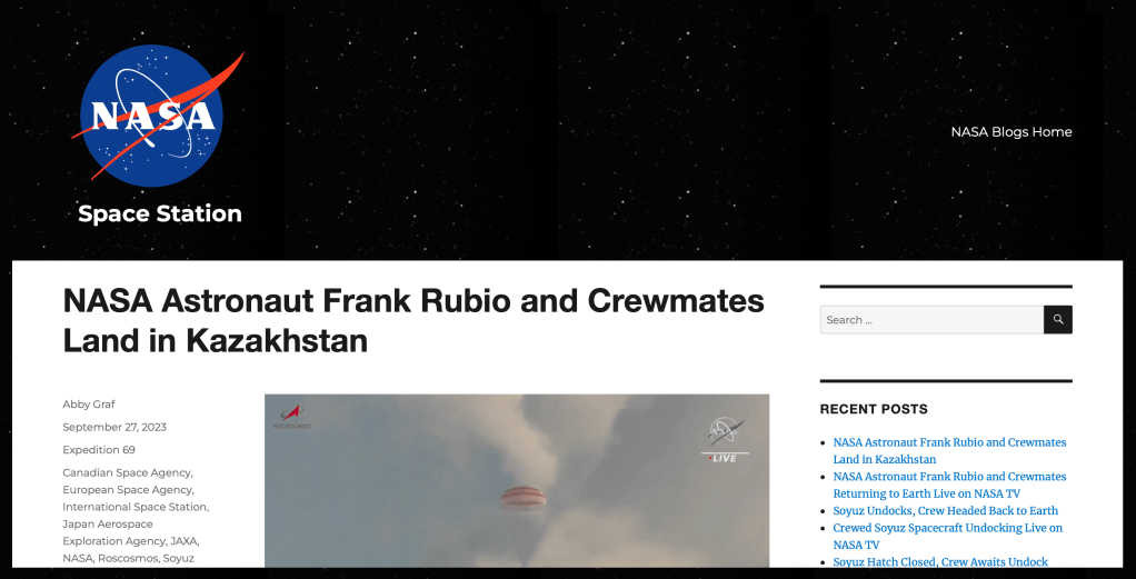 1. NASA Blogs – NASA Astronaut Frank Rubio and Crewmates Land in Kazakhstan