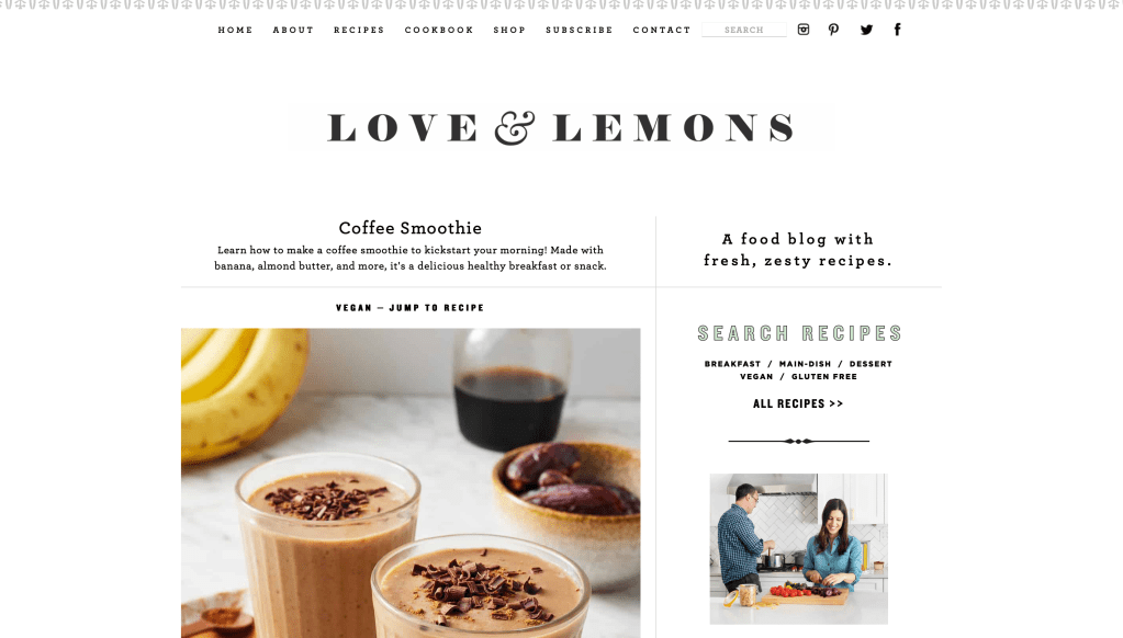 Love and Lemons is a famous food blog that, in addition to sharing opinions on dishes, also share recipes with a peculiar way of writing not only the process, but also the reason on each ingredient. Being a food website, it works with descriptions and qualifying adjectives in a way that transports the textures and flavors to your palate just by reading it.