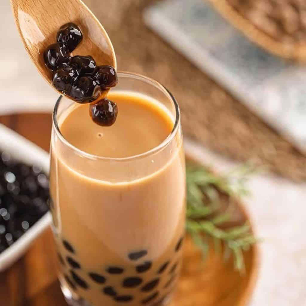 Add the cooked boba and mix until thoroughly coated. The boba can be left covered for up to three hours. Do not refrigerate as they will harden.
