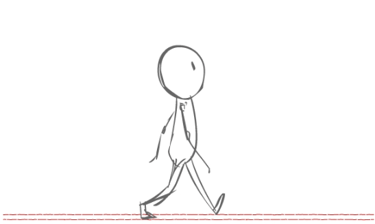 Keyframe 1: Start with the left leg forward and the right leg back. Draw your stick figure in this position.