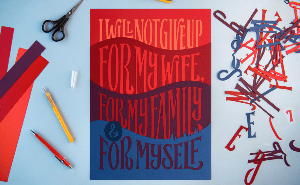 It is admirable how the letters, shapes and colors can give a little bit of hope in a project like this. This amazing work is produce by Cyla costa. All the phrases made in different techniques: lettering, paper cutting, watercolors, among others..