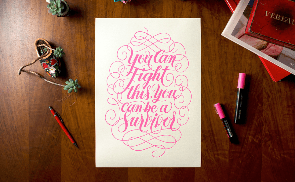 “It’s a series of 12 hand made posters done in various techniques, each one with the extract of a patient’s testimonial. All patients are fighting serious or incurable diseases, in hope of a cure. The idea behind the campaign is to send messages of hope to these patients in really tough scenarios and to the researchers that dedicate their lives searching for cure and better treatments”.
